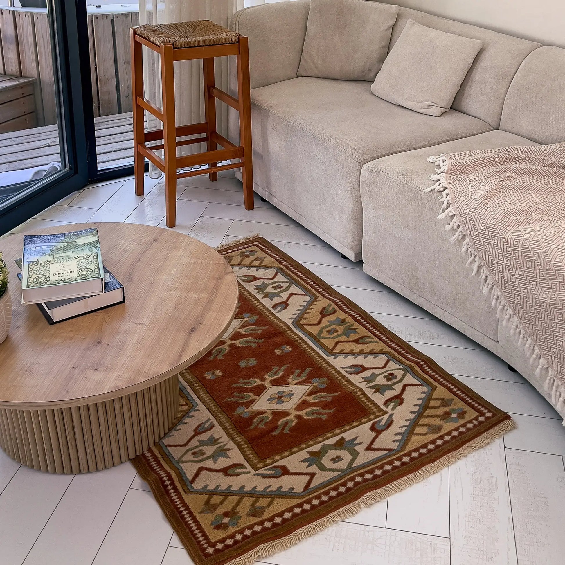 Pastel toprak tonları Japandi, modern rustik ve Akdeniz kurgularına kolayca karışır; doğal ahşap ve keten/pamuk tekstillerle küçük alanlarda sıcak bir odak yaratır. Zamansız renk dengesi, uzun ömürlü bir yün halı arayanlar için ideal.