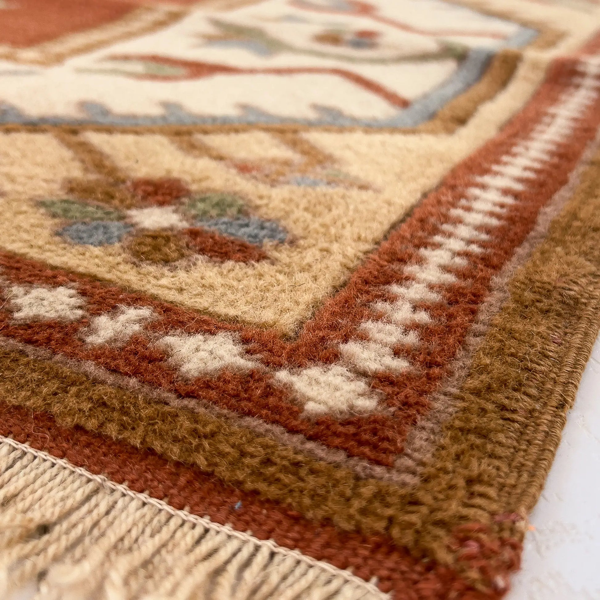 Fotoğraflar profesyonel stüdyo koşullarında çekilmiştir. Ev ortamındaki ışık ve ampul rengi nedeniyle halınızın tonu fotoğraflardan farklı görünebilir. Bu farklılık halının özgün karakterinin doğal bir yansımasıdır.
