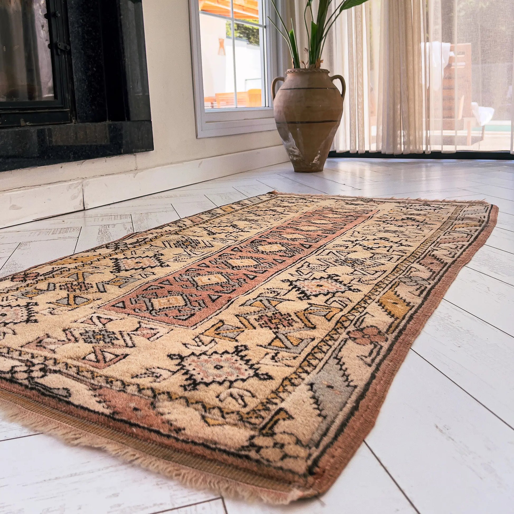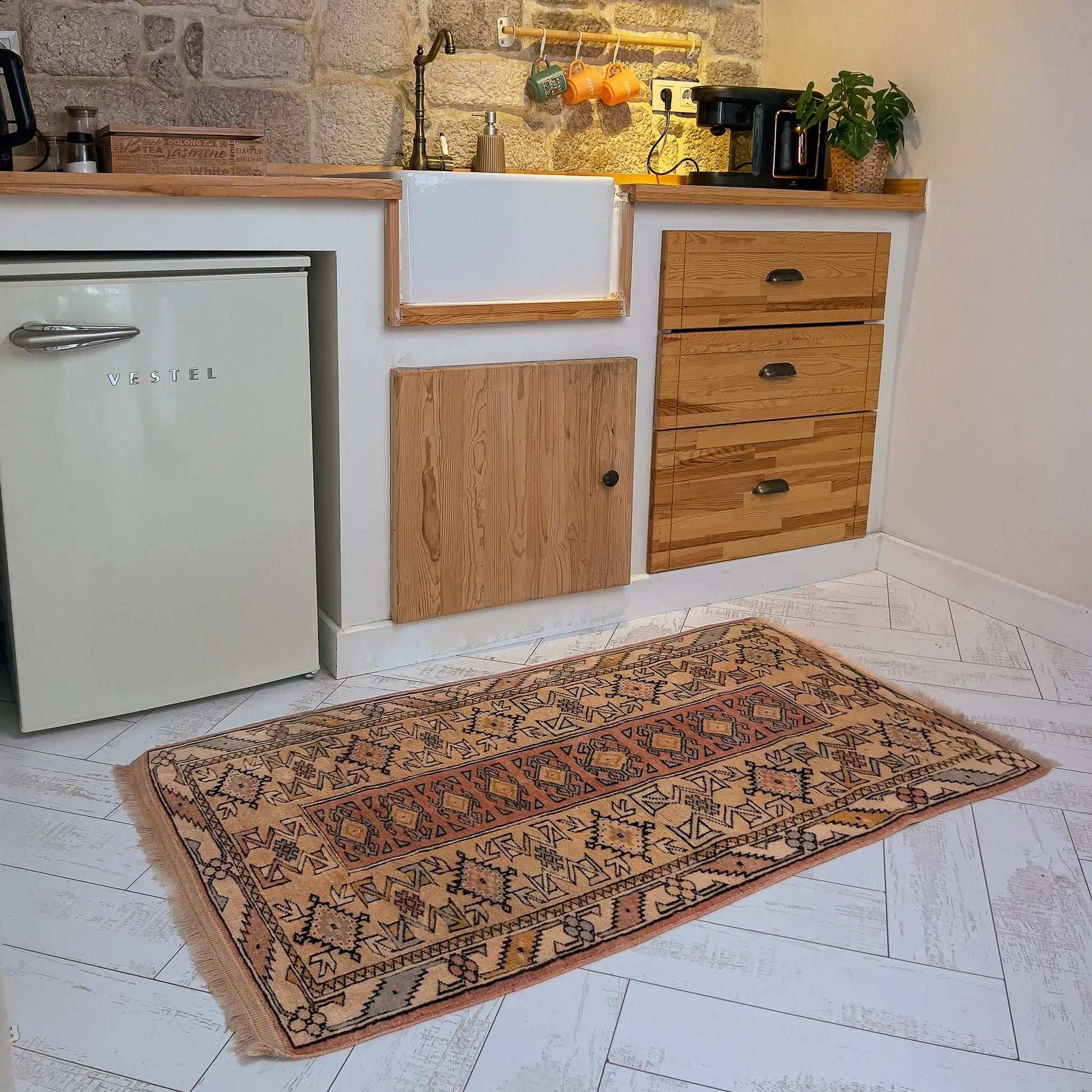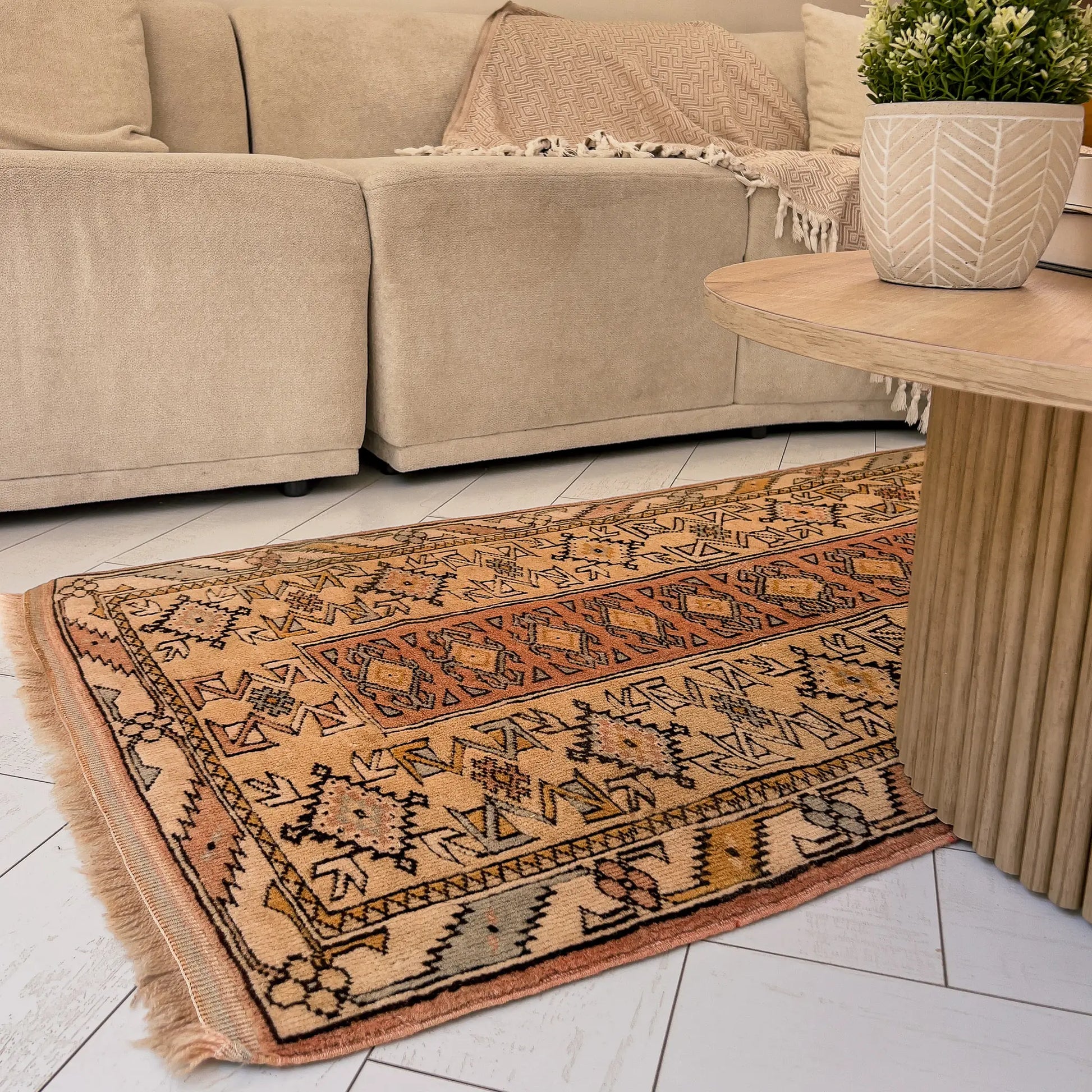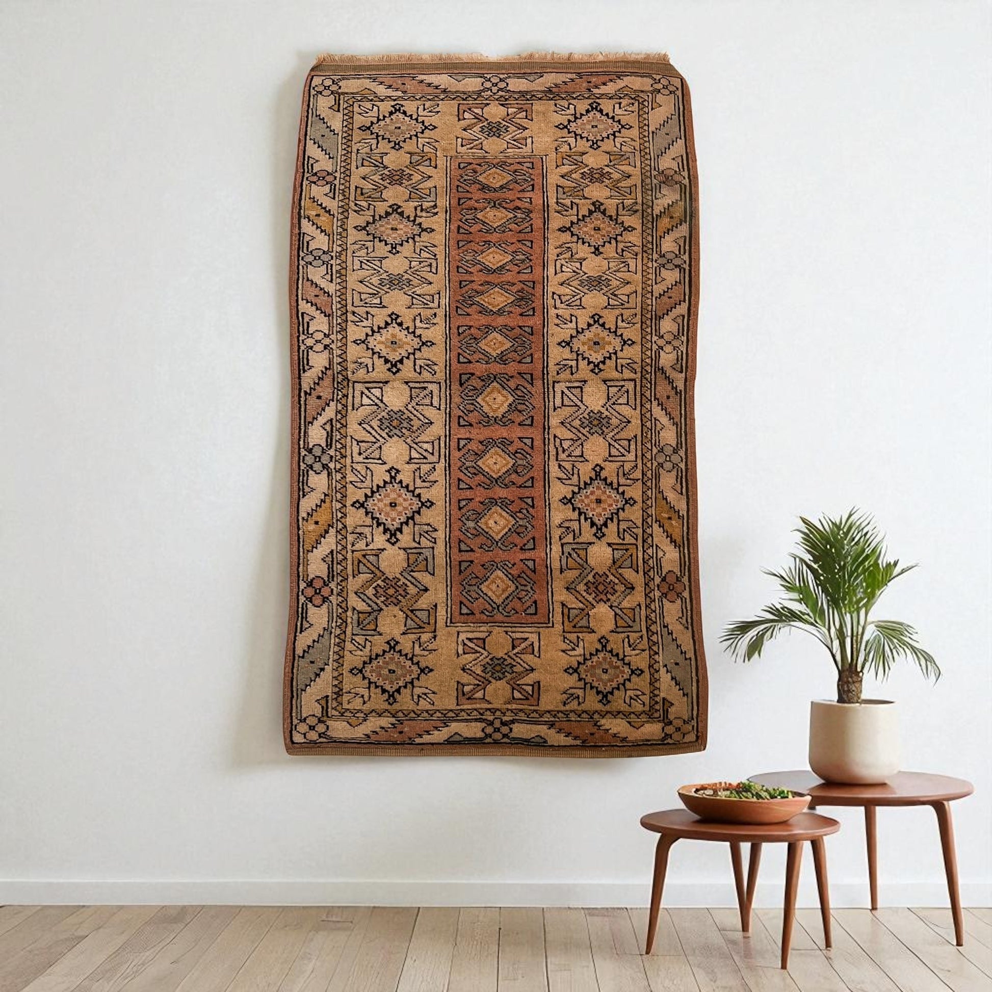 Halılarımız 30-90 yıllık vintage el dokuma parçalardır. Dokumadaki küçük asimetriler ve yılların getirdiği izler bir kusur değil; halının yaşanmışlığını ve özgün karakterini yansıtan doğal detaylardır.Efes Halı siz değerli misafirlerimize asla günlük kullanımda sorun yaratacak bir parça sunmaz.