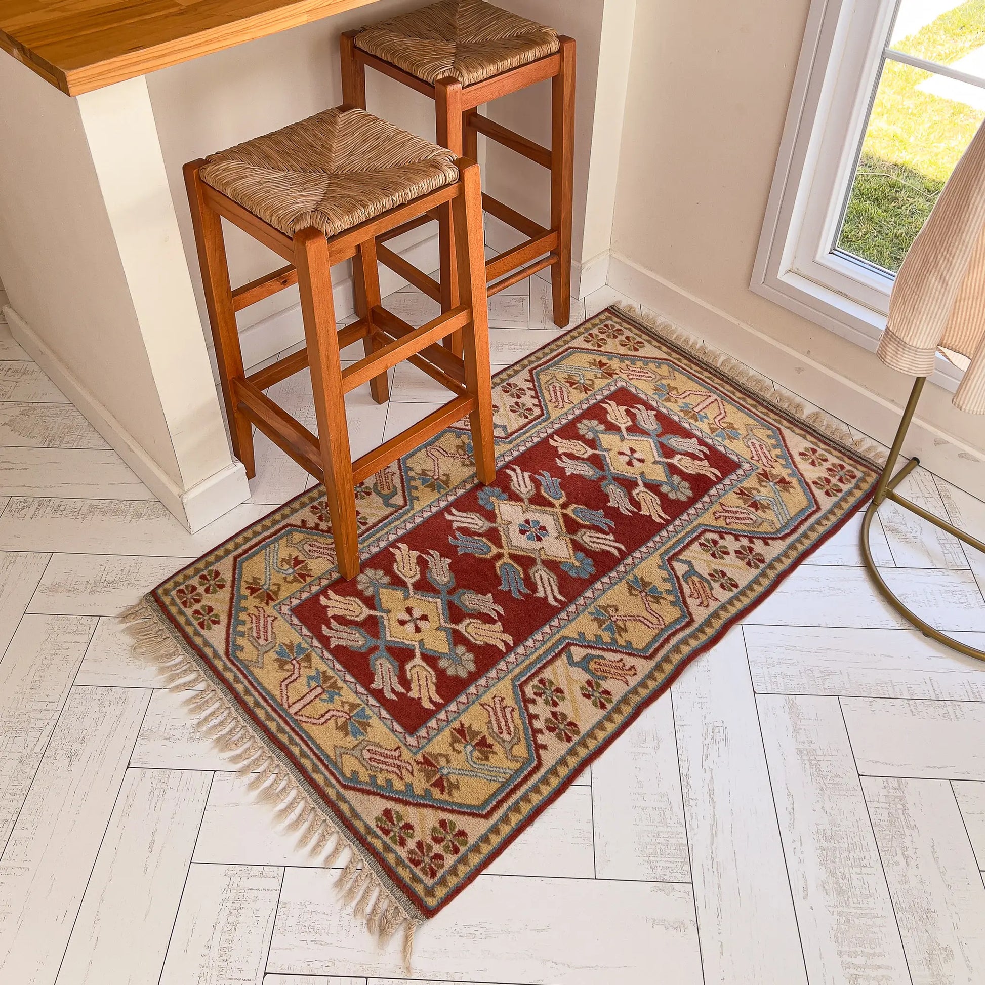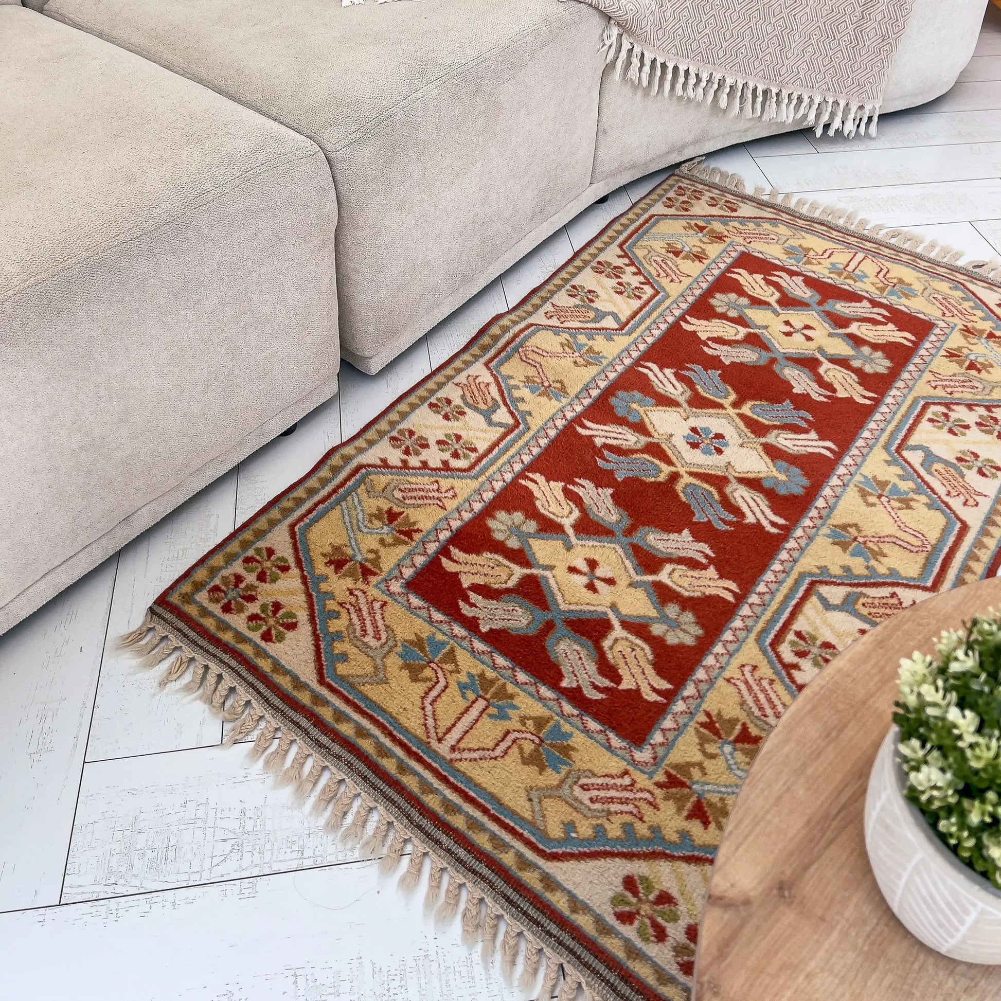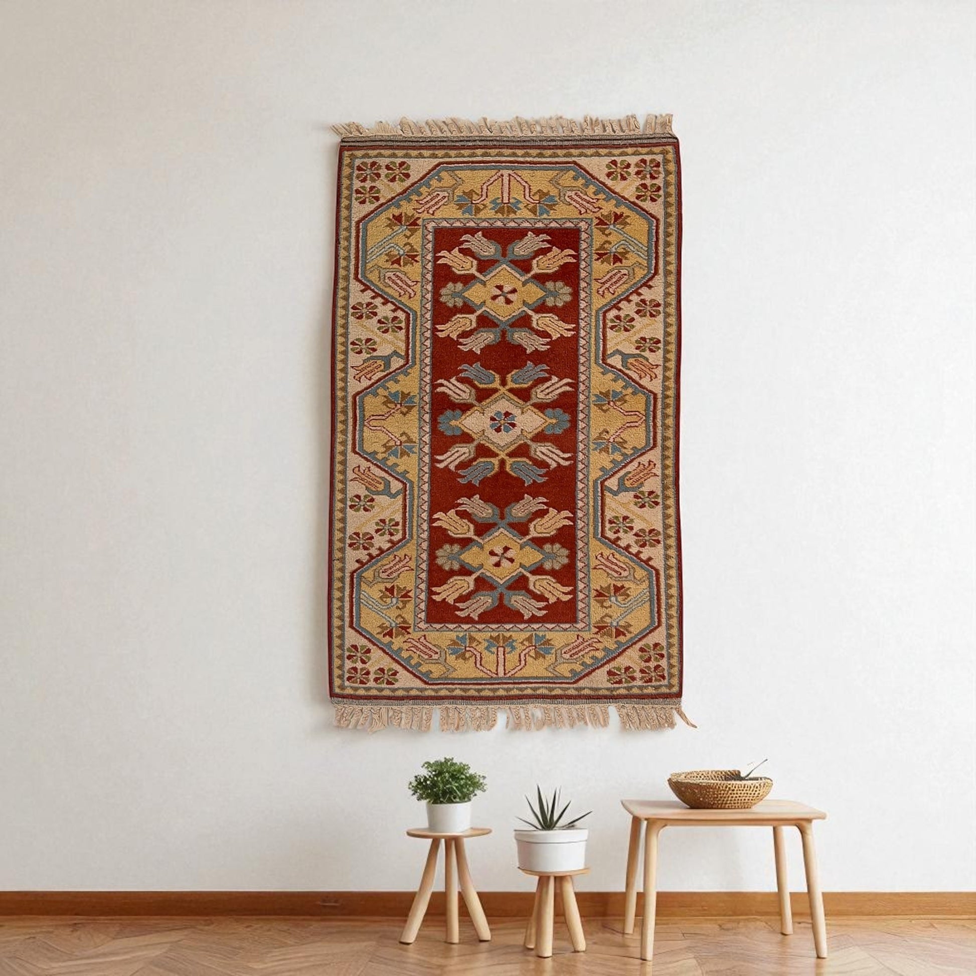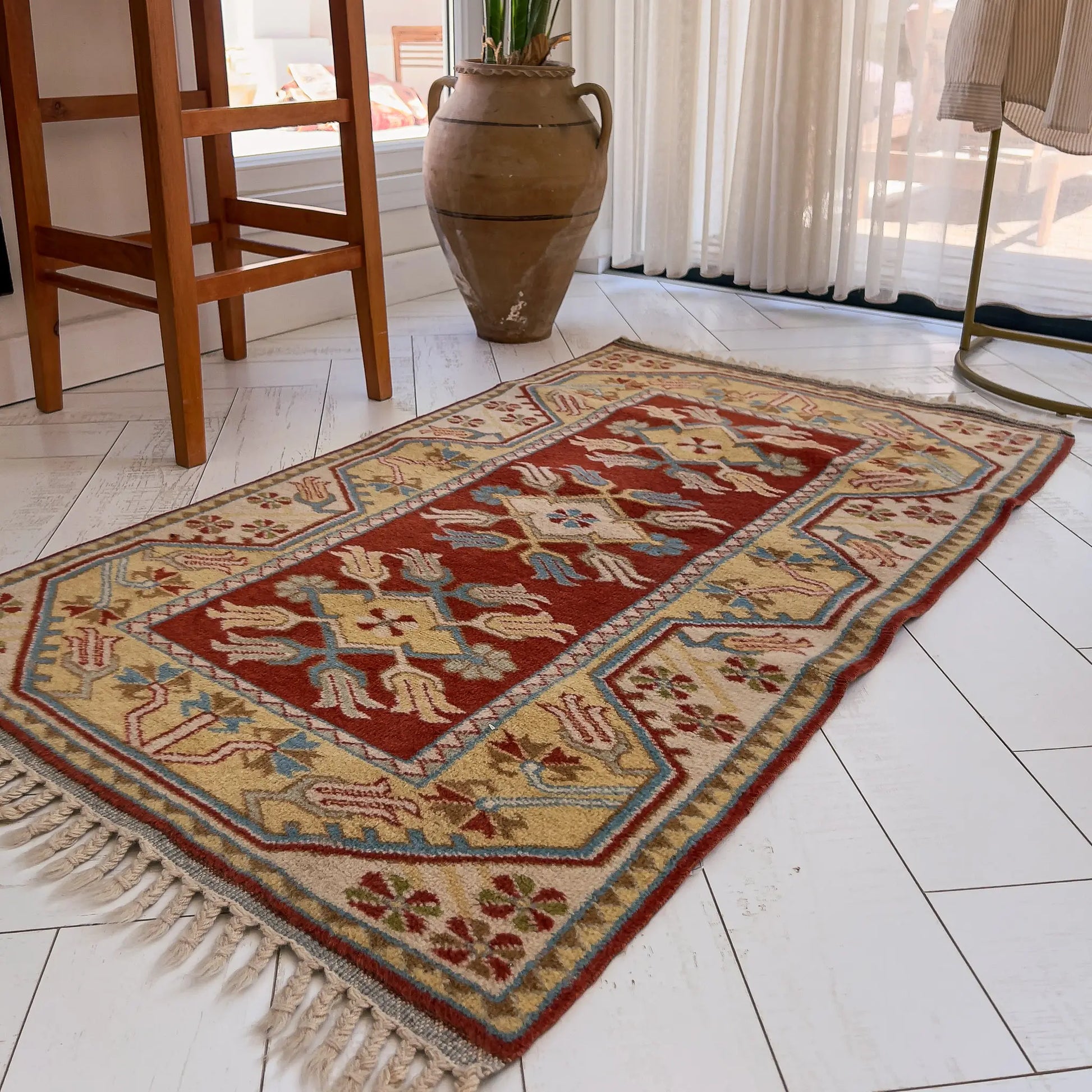 Ege’nin zamansız estetiğini yansıtan bu Milas el dokuma halı, sıcak kırmızı merkezi ve geniş krem bordürüyle klasik Anadolu düzenini modern evlere taşır. 140x78 cm ölçüsü, dar koridor, konsol önü ya da yatak ucu gibi küçük alanlarda şık bir odak yaratmak için idealdir. %100 yün dokusu ve sık Gördes düğümü sayesinde sağlam, esnek ve uzun ömürlüdür.