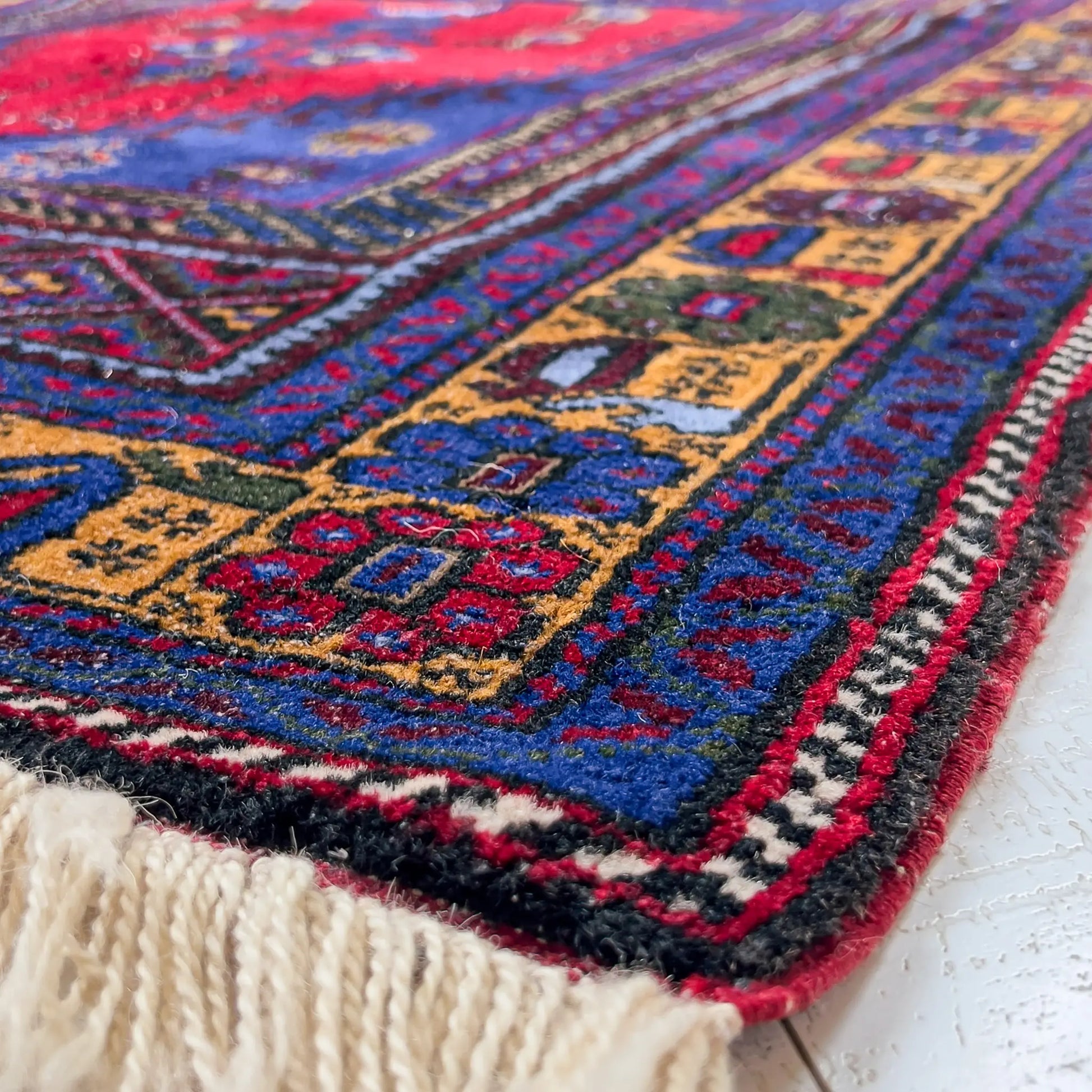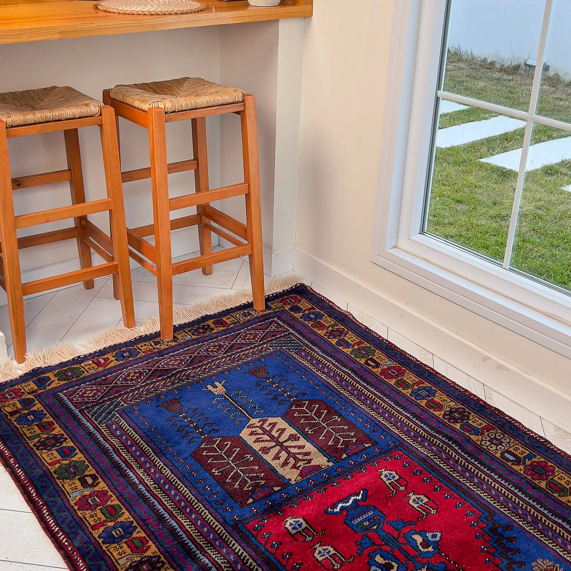 Kırmızı ve lacivertin güçlü kontrastı, 60 yıllık bu halıya “canlı ve cesur” bir karakter kazandırıyor. Nora, bulunduğu ortama yalnızca renk değil, aynı zamanda Yörüklerin derin kültürel mirasını da taşıyor.