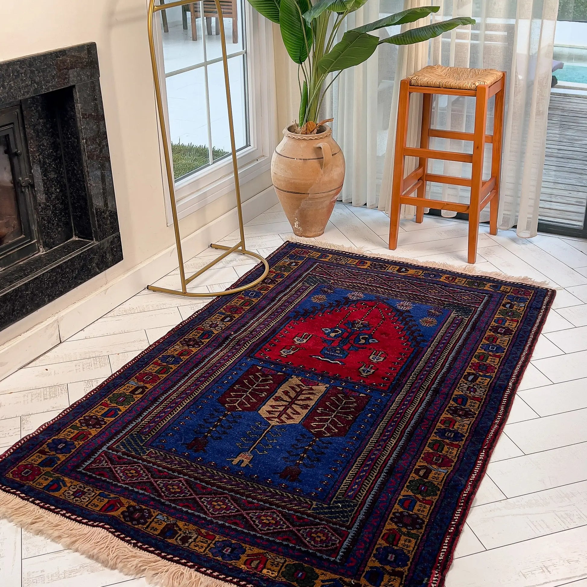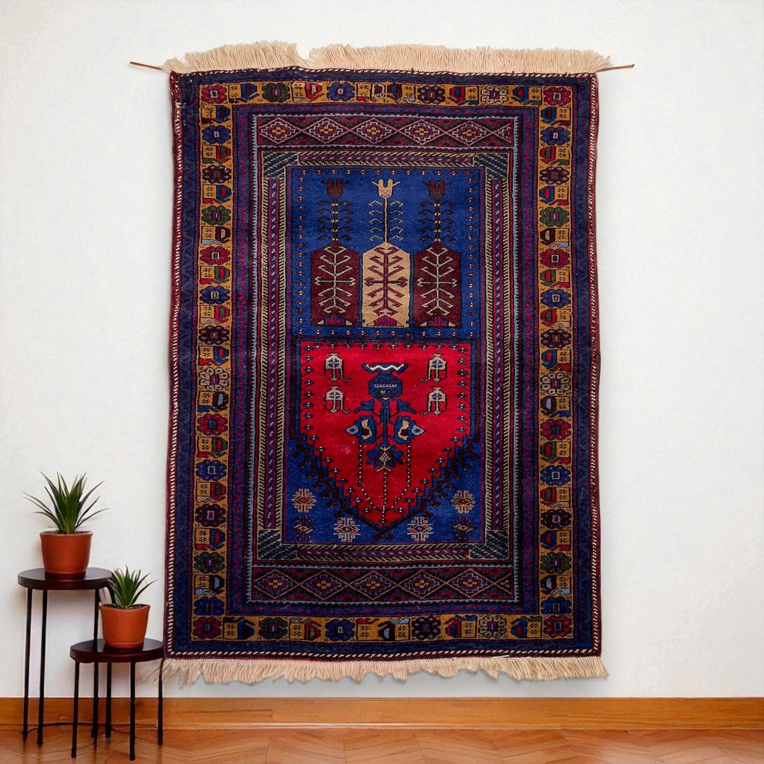 Kapadokya damarının sembolik zarafetini taşıyan bu Aksaray seccade, mihraplı düzeni, zengin bordür katmanları ve kandil-ağaç yorumlarıyla dikkat çeker. 190x118 cm ölçüsü, orta boy salon halıları içinde sehpa altı veya duvar asımı için etkileyici bir seçenektir.