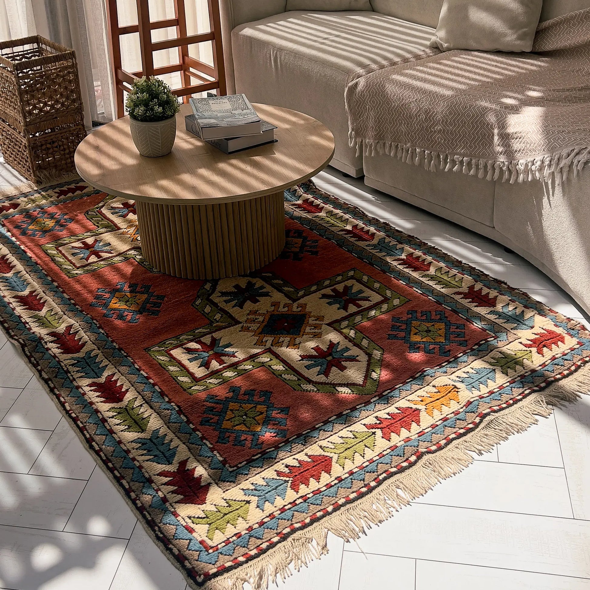 Doğal ahşaplar (meşe/ceviz), keten–pamuk tekstiller ve mat seramiklerle kusursuz uyum yakalar. Modern–rustik, Akdeniz ve bohem kurgularda sehpa altı, okuma köşesi veya girişte sıcak bir karşılama etkisi verir. Nötr koltuklar ve krem duvarlar üzerinde renkleri dengeli biçimde parlar; kaydırmaz ped hem konforu hem formu uzun vadede destekler.